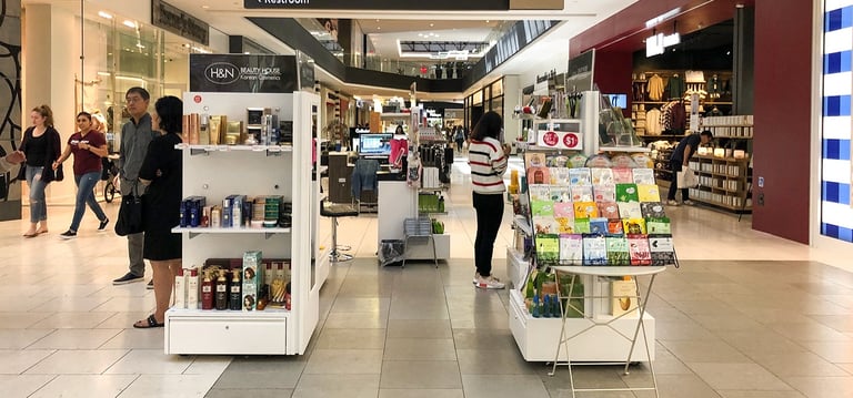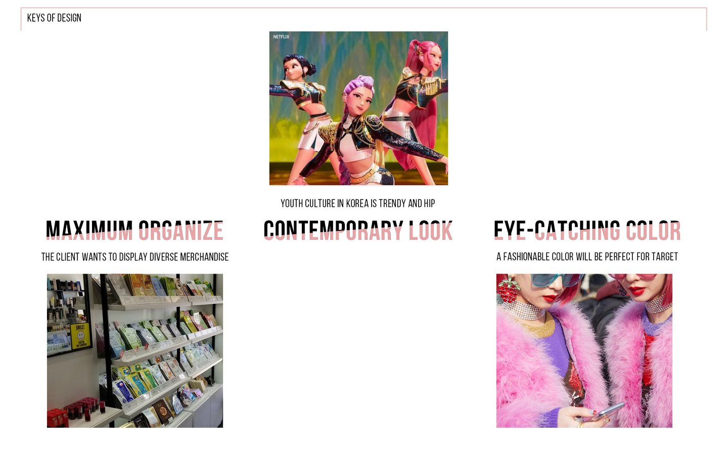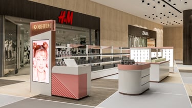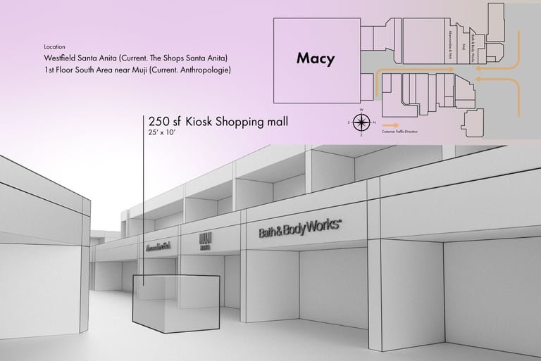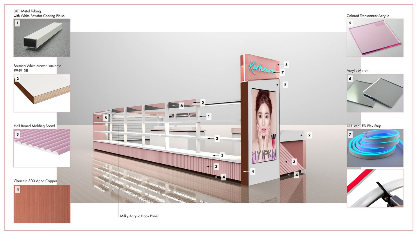 The Kiosk Shop is located in the Westfield Santa Anita Mall. At the client's request, we focused on how to promote Korean cosmetic products to young female customers aged 10 to 20. I designed a contemporary aesthetic for the shop and chose white and pink as the key colors to express pure beauty.