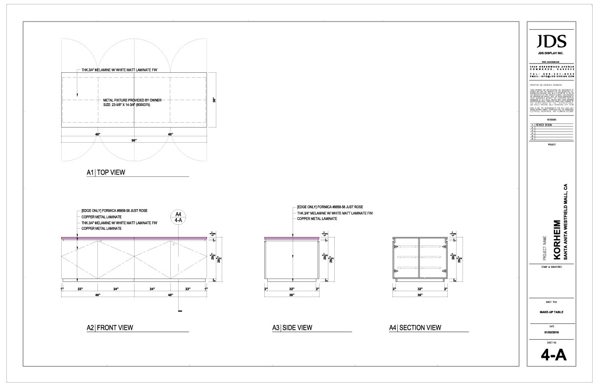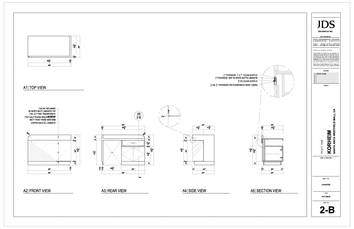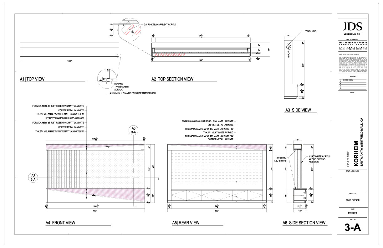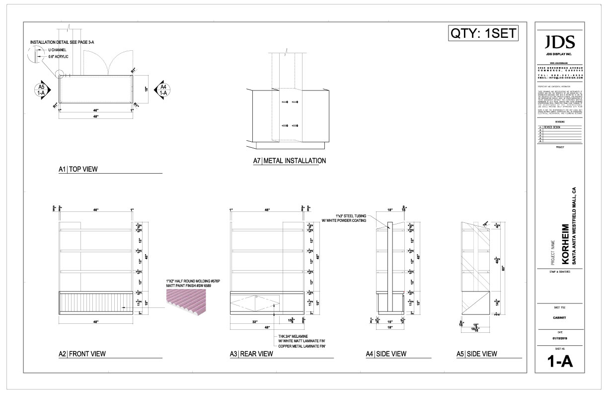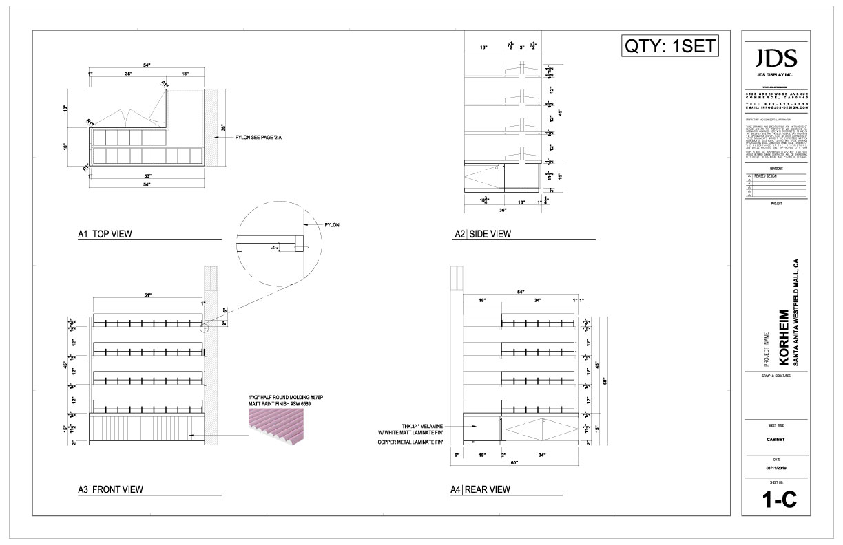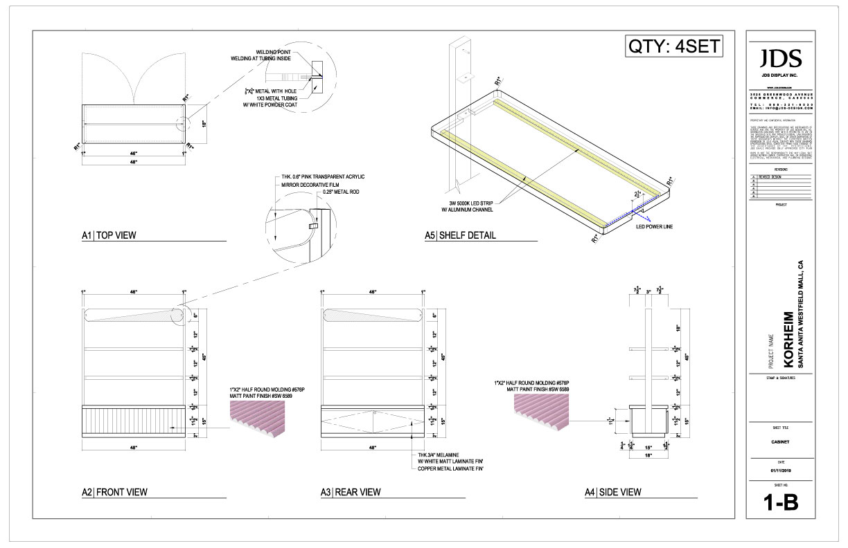 I designed a display cabinet wall that includes a storage cabinet on the back side for the Le Mieux Skin Care Showroom in Pasadena, CA. The client requested an iconic design to enhance the attractiveness of the displayed products. To achieve this, I created an asymmetrical angular design, and the areas where the products were placed were modified to resemble the shapes of skin membranes.