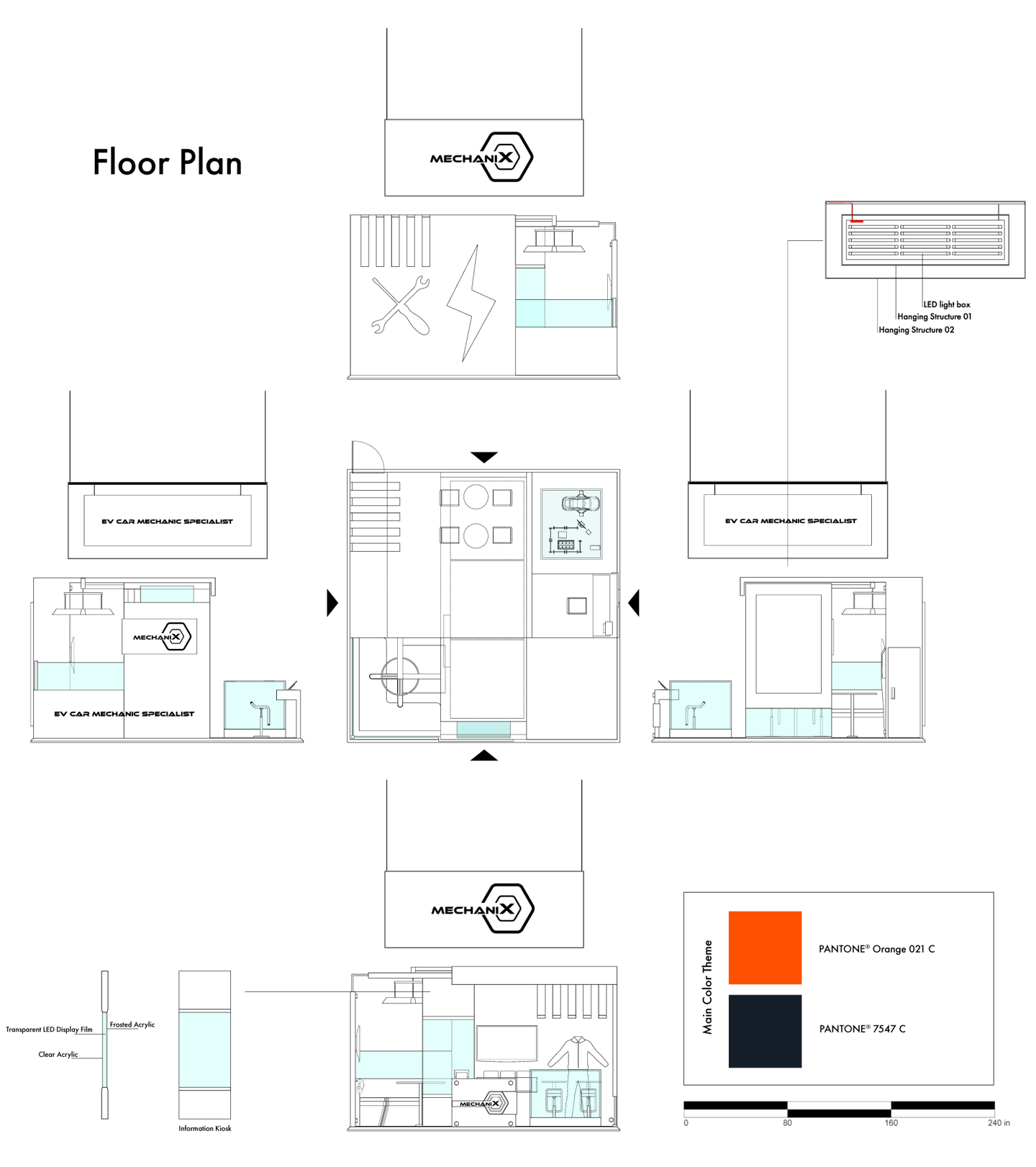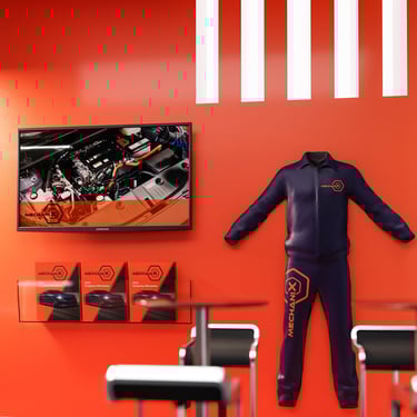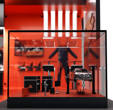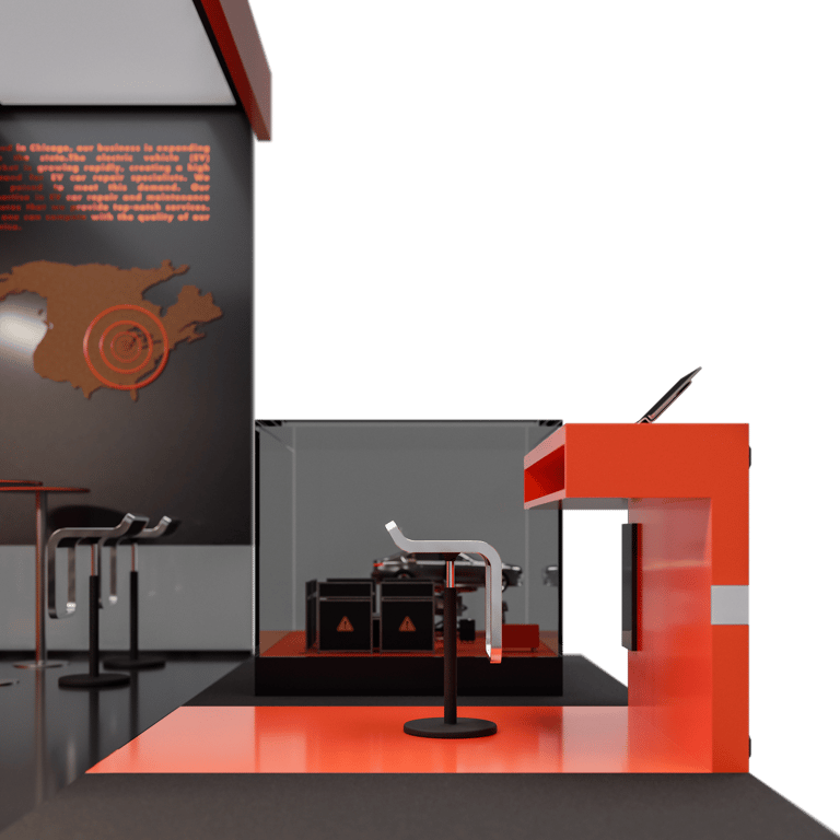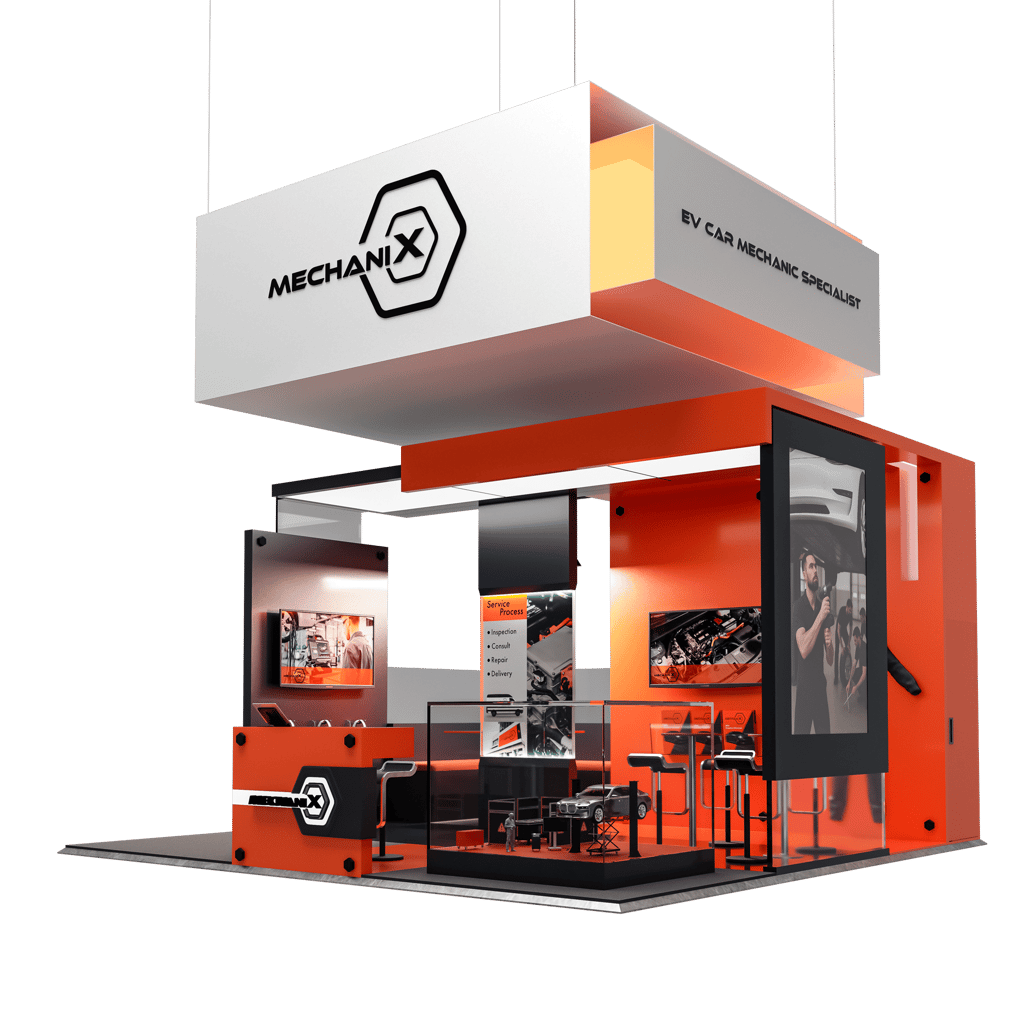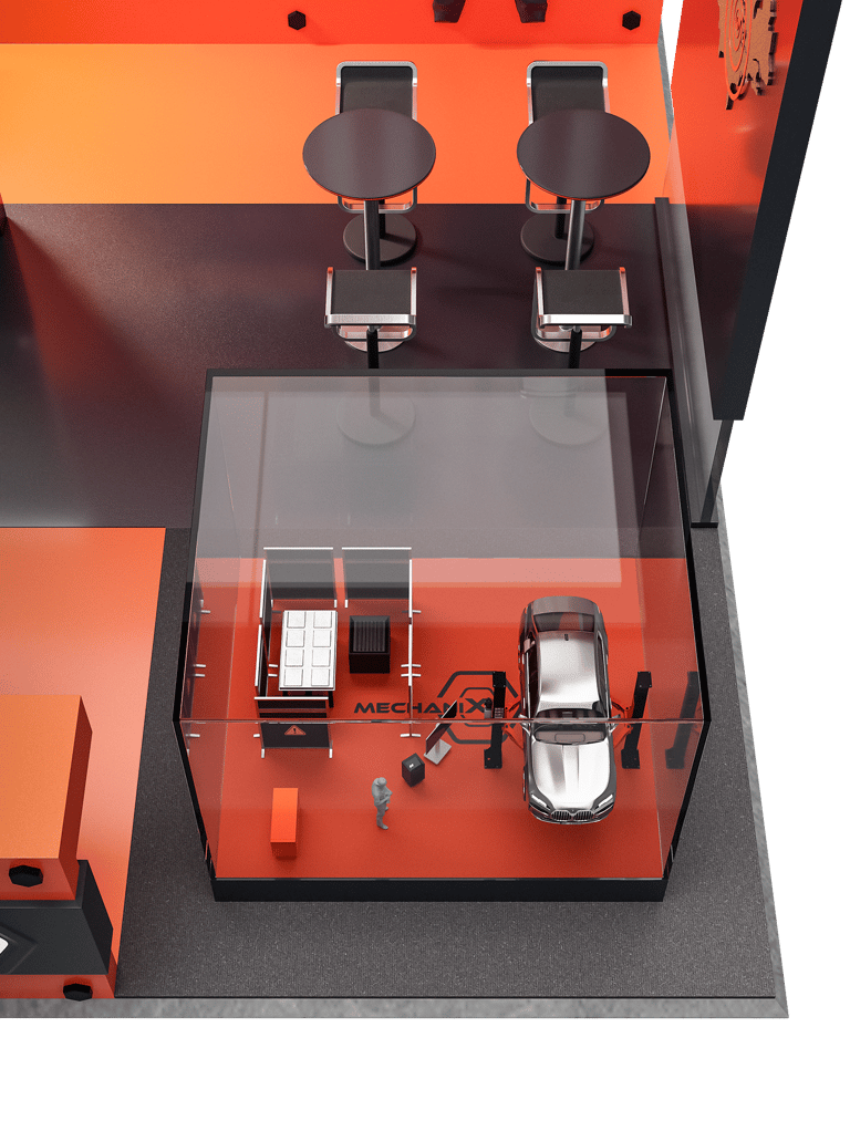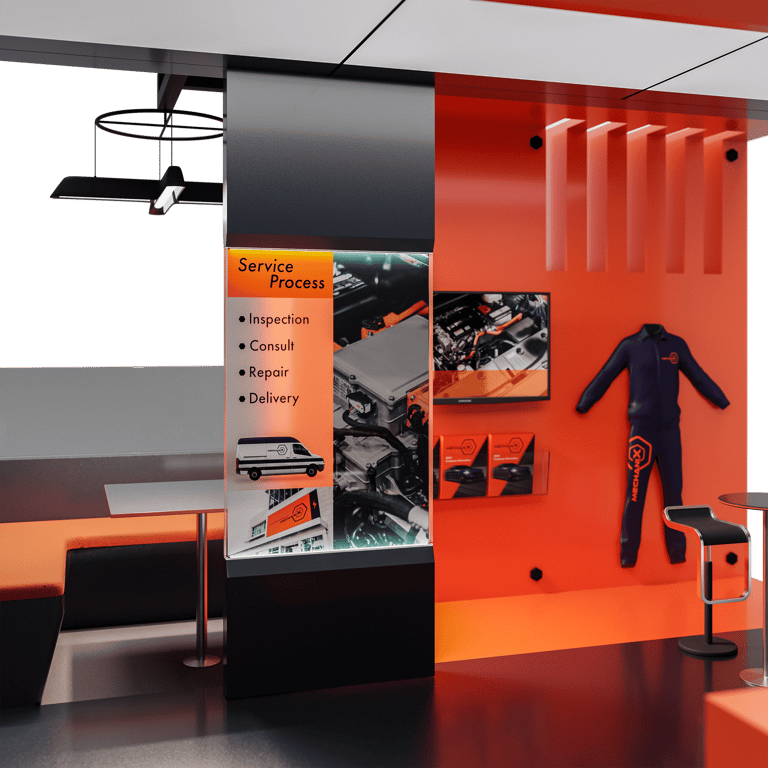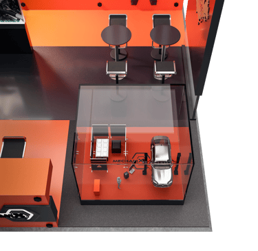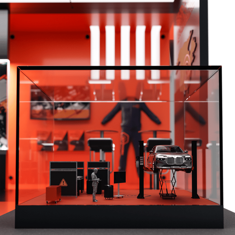 The Display Glass Box presents a physical scale model of the MechaniX store, offering visitors a tangible sense of its layout and design. This miniature display captures attention and helps potential partners visualize their own future shop. By combining an analog presentation style with a high-tech EV service concept, it highlights that MechaniX is not only a technology-driven brand but also deeply rooted in authentic mechanical expertise.