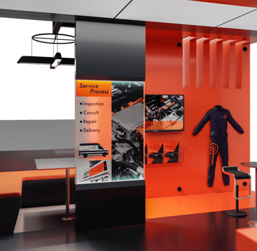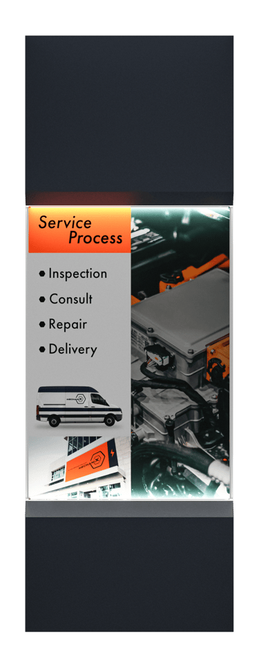 The Information Kiosk delivers animated content through a transparent LED display, showcasing MechaniX’s work process, equipment, technician training programs, and brand history. The kiosk offers an engaging and modern way to communicate key information, with optional interactive features available based on budget and project needs.