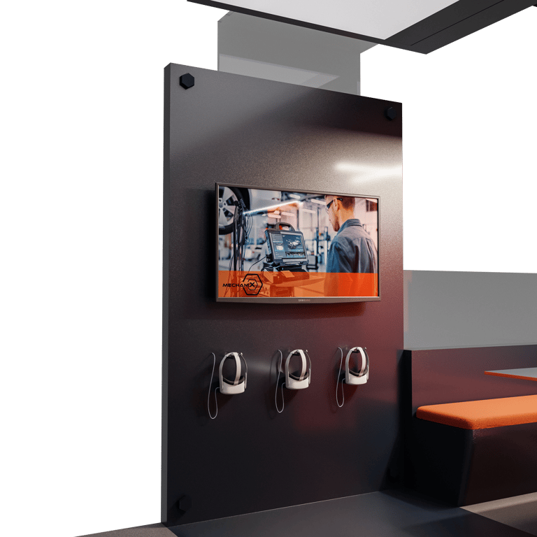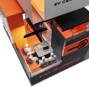 The VR experience allows visitors to explore the MechaniX shop virtually — showcasing the available equipment, workspace layout, and the range of EV care services offered. Through this immersive experience, attendees can better understand the MechaniX business model and make informed decisions about joining as a franchise partner.